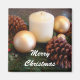 An elegant candle surrounded by pine cones and ornaments. Change the saying as desired.