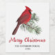 Modern watercolor script Merry Christmas and red Cardinal bird on a pine branch wine label. Personalise these and add these to your holiday party event or family gathering to make it even more special. Find more like this design in the Cardinal bird holiday collection below this product or in my store.