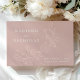 This Elegant Cascading Blush Leaves guest book adds a stylish, personalised touch to your wedding ceremony. The design features your names, wedding date, and location in white lettering divided by a vine of sketched leaves with a blush background. Add custom text to the spine such as your names, wedding date, etc. The back of the blush wedding guest book displays your horizontal engagement photo.