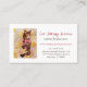 Use this pretty business card for your cat sitting or pet care business featuring an illustration of a tabby cat wearing a pink bow sitting in a bed of yellow flowers. Use the template fields provided to customise with your business information on the front and your services listed on the back.