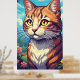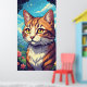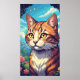 Elegant cat with sparkling golden eyes cheerful background fantasy