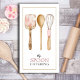 Elegant watercolor illustration chef caterer business card with whisk, spoon and spatula utensils. Modern elegance.