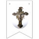 Design features the initials of Bride and Groom on first and last flag surrounded by the image of elegant roses and hydrangeas. Flag 2 displays the image of joined wedding rings. Centre flag displays the image of a silver Crucifix, signifying a Catholic theme. The customisable words, "To Be Wed" are displayed in an elegant Nuptial font. Very elegant.