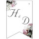 Date of wedding is displayed on flags13, 14 & 15. The elegant image of soft pink roses and white hydrangeas is featured on flags 5 and 12 and are customisable. Background is white. Designed to coordinate with the "Elegant Catholic Bridal Shower Collection."