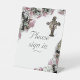 Design features the elegant and realistic images of soft pink roses and white hydrangeas as they grace the edges. The image of a silver Crucifix is displayed near top right corner. Your text is featured in a lovely silver-coloured font in centre. Very elegant. Designed to coordinate with the "Elegant Catholic Bridal Shower Collection."