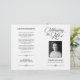 Elegant funeral program in black and white, with swirly calligraphy scripts. On the cover, a photo of your loved one along with their name and years living. Inside you can write the obituary and program. On the back you can add acknowledgements. Fold it yourself for a practical program!