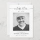 Invite your loved ones to honour and celebrate the life of a special person with our Elegant Celebration of Life Photo Funeral Memorial Invitations. These personalised invitations feature a stunning photo of your choice, capturing beautiful memories and reflecting the essence of your loved one. The design is modern, elegant, and minimalist, creating a timeless and sophisticated look. With the option to customise the details of the funeral service, these invitations serve as a heartfelt tribute and a meaningful way to invite family and friends to join in remembrance and support. The elegant design and personalised touch make these invitations a memorable keepsake for all recipients. Share the details of the funeral service and express your desire for their presence as you honour and celebrate the life of your loved one. These invitations are a thoughtful and touching way to invite others to be a part of this important occasion.