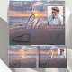 Add a favourite photo of your loved one, along with full name and life dates, to this beautiful "Celebration of Life" Guest Book designed around an amazing photo of sunset over the ocean with a heart drawn in the sand. On the back is room for a quote or Scripture especially meaningful to your late loved one. The text is in contrasting fonts in blue with the exact shade selected to contrast with the background.