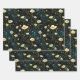 Elegant Celestial Floral Midnight Blue & Gold Wrapping Paper Sheet