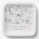 Elegant Celestial Navy Starry Night Moon Wedding Paper Plate