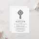 An elegant baptism invitation featuring an illustration of a Celtic cross and simple modern typography.