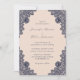 Elegant Champagne Navy Blue Lace Wedding Invitation