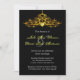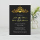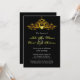 Elegant wedding invitation design with a highly detailed golden chandelier on a black background. This design comes on several stationery products to make a beautiful theme for all your wedding stationery.