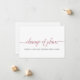 Sometimes weddings need to be postponed. Ask your guests to change your wedding date with this simply elegant design featuring the words "change of plans" in modern rose gold pink script typography on the front along with your message and names on the back.