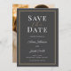 Set a sophisticated and stylish tone for your upcoming wedding with this elegant Save The Date card. This design features a rich charcoal gray background complemented by a stunning faux gold foil look for the typography and the classic double border frame. It’s perfect for couples planning a formal, modern, or black-tie event.