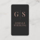 A refined business card design combining deep charcoal with soft rose gold accents on an ivory backdrop. The graceful GS monogram pairs with modern typography for a timeless and sophisticated look. The back includes clear contact details, a professional tagline, and a QR code for instant connections. Ideal for consultants, creatives, and entrepreneurs seeking an understated yet luxurious brand presence.