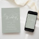 These elegant charm green wedding invitations with RSVP are perfect for a simple wedding. The modern minimalist design features timeless pastel sage green and romantic calligraphy with bohemian fairytale style.