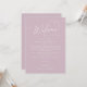 This elegant charm pink wedding itinerary template is perfect for a simple wedding. The modern minimalist design features timeless dusty rose pink and romantic calligraphy with bohemian fairytale style, perfect for a spring or summer garden wedding.