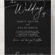 This elegant charm QR code black wedding all in one invitation is perfect for a simple wedding. The modern minimalist design features timeless romantic calligraphy on a sophisticated dark black background with bohemian fairytale style.