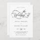 Elegant black and white wedding invitation featuring romantic swirly calligraphy lettering with details on the back. Perfect for any season. For more advanced