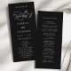 This black and white wedding ceremony program features elegant, romantic swirly calligraphy lettering with a formal script. For more advanced customisation of this design, please click the BLUE DESIGN TOOL BUTTON above!