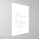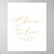 An elegant sign for your wedding or engagement welcome drinks, featuring 'cheers to love' in real foil pressed gold modern calligraphy font. Personalise with your names and wedding date.