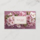 Present your professional brand with an air of timeless sophistication using this classic and elegant cherry blossom business card. The design features a lush, horizontal garland of photo-realistic sakura flowers, creating a stunning and beautifully balanced frame. The cherry blossoms are rendered in a beautiful spectrum of pink hues, from soft blush to deeper rose, and are complemented by delicate green leaves for a touch of natural realism. This exquisite floral arrangement is set against a rich and sophisticated mauve background, providing a perfect canvas for your business details, which are elegantly presented within a classic cream-coloured text box finished with a delicate faux gold frame.