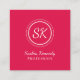 Elegant Cherry Red Script Professional Monogram Square Business Card
