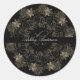 Elegant Chic Black and Gold Floral Script Monogram Classic Round Sticker