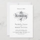 This elegant black-and-white wedding invitation is perfect for a modern wedding. The simple design features elegant black calligraphy on a clean white background. The invitation card includes the wedding details on the back instead of paying for a separate enclosure card.