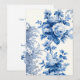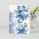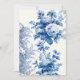 Classic and elegant blue and grey flowers, vines and leaves on antique white background. Back features complementary floral graphic and editable text fields.