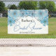 At the heart of the banner, the text is gracefully inscribed in a flowing, cursive font, embodying the joy and sophistication of the occasion. The deep blue lettering harmonises with the floral backdrop, creating a cohesive and chic visual appeal.