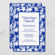 Elegant Chic Blue | White Floral Pattern Birthday Invitation