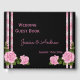 Beautiful floral design for weddings. Elegant, glamourous and sophisticated custom wedding guest book with a pretty romantic corner bouquet display of chic pink roses and greenery, with pretty shiny pink and silver double side frame borders all printed on a black background. These are beautifully designed guest books for weddings with cute, stylish, girly flowers in pink colours. Perfect for your special day. A fashionable modern design with a sophisticated romance look. I also have other matching items in my store. If you would like help in customising your product please contact me through my store and i will be very happy to help you.
