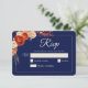 Elegant chic fall orange navy floral wedding RSVP Card. Set the tone for your elegant fall wedding with this chic RSVP card, featuring a stunning blend of warm orange and deep navy florals. The rich autumn-inspired colour palette, paired with sophisticated typography and delicate botanical accents, creates a timeless and refined look. A perfect addition to your wedding suite, this RSVP card ensures your guests can respond with style and ease.