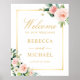 Welcome your guests in style with this Elegant Floral Wedding Welcome Sign featuring soft watercolor blooms and a chic gold frame. Perfect for setting a warm and inviting tone at your wedding entrance.