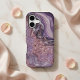 Introducing our exquisite iPhone case inspired by the mesmerising beauty of purple agate. The swirling patterns evoke the elegance of natural agate stones, creating a luxurious marble-like appearance. Shades of deep and light purples blend seamlessly, making this case a true work of art. Glitter accents are sprinkled throughout, catching the light and adding a touch of sparkle. Plus, the centre features fully customisable text. Personalise it with your own name or a special message! Elevate your style and protect your device with this unique masterpiece.