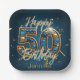 Elegant Chic Gold and Blue Gemstone 50th Birthday Paper Plate