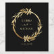 Here's a gorgeous choice for your upcoming wedding reception. This design features a chic faux gold foil eucalyptus greenery wreath encircling the names of the bride and groom followed below by their wedding date on an elegant black background. The text is easily personalised using the template provided. If you have a design question or would like to see this design on another product, please feel free to message me or contact me at jschmidtdesignworks@gmail.com. Design © Judith Schmidt.