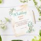 The design features light orange watercolor splashes and simulated flecks. The design also features contains eucalyptus branches and other light orange elements in shades of dark orange, and more to fit all seasons that your wedding may fall within and colours that compliment the colour blush. The back of the invitation has a beautiful bride and groom's monogram.