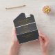 We absolutely loved how these wedding invitations turned out! We went with the standard paper stock, and it is plenty thick. One thing we probably would have changed is not doing the big white block on the front for the recipient address. Our invitations are a dark green. When we went to Staples to look at the options for labels, we saw some cute kraft stock colored ones that would have looked really cute on the dark green rather than using matte clear labels within the white block if that makes sense. They are still adorable though. I just fancied up my matte labels with a little leafy design and pretty font for the names so I feel like it helped it look more cohesive. Also, if you’re worried that they look pricey, make sure to put your quantity in because the price goes down significantly. We found this to be a super affordable, efficient and unique option that checked all of our boxes. When folded, they are the size of a little Google home screen see pictures. Perfect! Colors look exactly as we expected and the printing quality is clear and consistent.