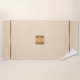 Girly trendy luxury looking monogrammed beach towel featuring a faux gold copper metallic glitter square and lines over a stylish classy cream ivory background. + Personalise it with your name or family name and monogram name initial.