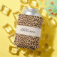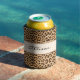 Keep your beverage cold with this Elegant Chic Leopard Print Personalized Can Cooler. Makes a great gift idea for someone who loves black and brown leopard pattern. It is a modern design with animal print background and personalized with name in elegant black calligraphy script lettering on the center of beige rectangular area.