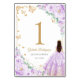 Elegant Chic Lilac Purple Gold Quinceanera Table Number