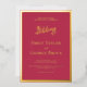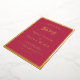 Introduce a touch of luxury to your wedding celebration with our modern foil wedding invitation, featuring elegant gold calligraphy on a bold magenta background with a gold frame. This invitation exudes sophistication and glamour, making it the perfect choice for your special day. The beautiful gold foil calligraphy is paired with a rich magenta background, creating a stunning contrast that is sure to impress your guests. The high-quality cardstock and your choice of size and paper type ensure a luxurious and personalised touch. Whether you're looking for a touch of elegance or a statement piece, this wedding invitation is sure to make a lasting impression. Add a touch of glamour to your wedding celebration with this modern gold foil invitation.