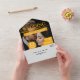 This elegant magazine cover-themed wedding invitation is perfect for a modern wedding. the simple design features elegant yellow typography on a couple-photo background.
