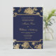 Elegant chic navy blue faux gold floral Wedding Invitation
