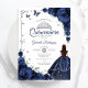 Elegant Chic Navy Blue Silver Floral Quinceanera Invitation