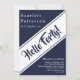 This elegant navy blue and white birthday invitation is perfect for a modern birthday. the simple design features elegant white calligraphy on a navy blue background.