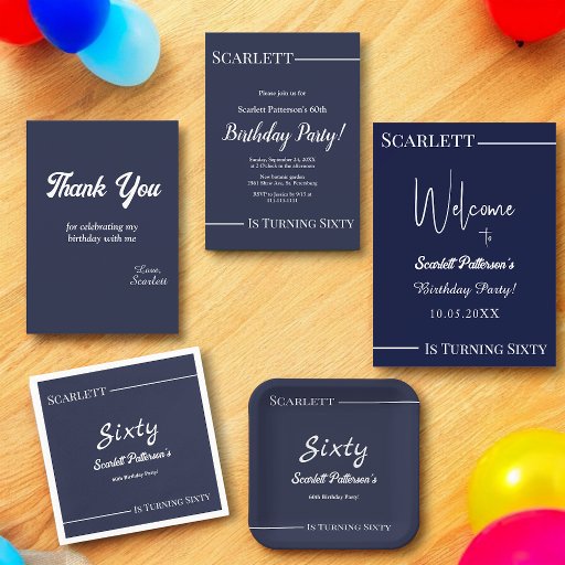 Elegant Chic Navy Blue White Simple 60th Birthday Invitation